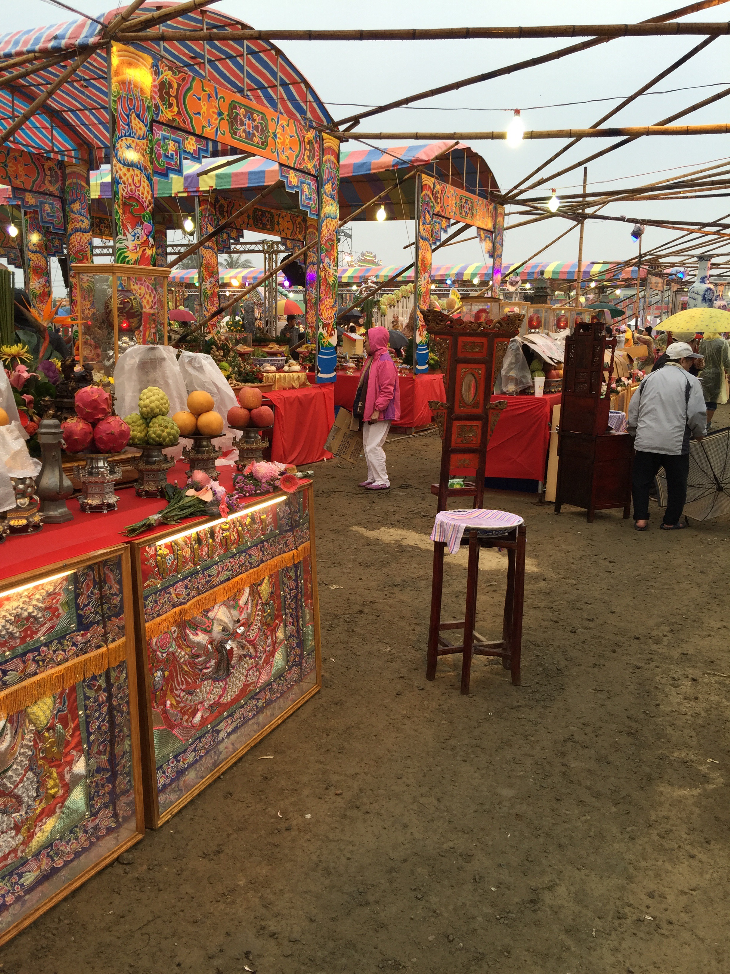Auf Formosa opfert man nicht nur für die Götter, sondern auch für die hungrigen Geister. Die verwirrten Seele, die heimatlos sind, werden gerne zum solchen Feier eingeladen. Das erste, was ein Taiwanesisches Kind lernt, ist Götter und Monster zu respektieren. Man tut es auf ähnliche Art. Man lädt die Monster oder Geister ein, zuerst zu waschen und dann eine Zigaretten zu rauchen. Es wird roter Wein aus Frankreich serviert, ebenfalls starke Sake oder Tee in PET Flaschen.