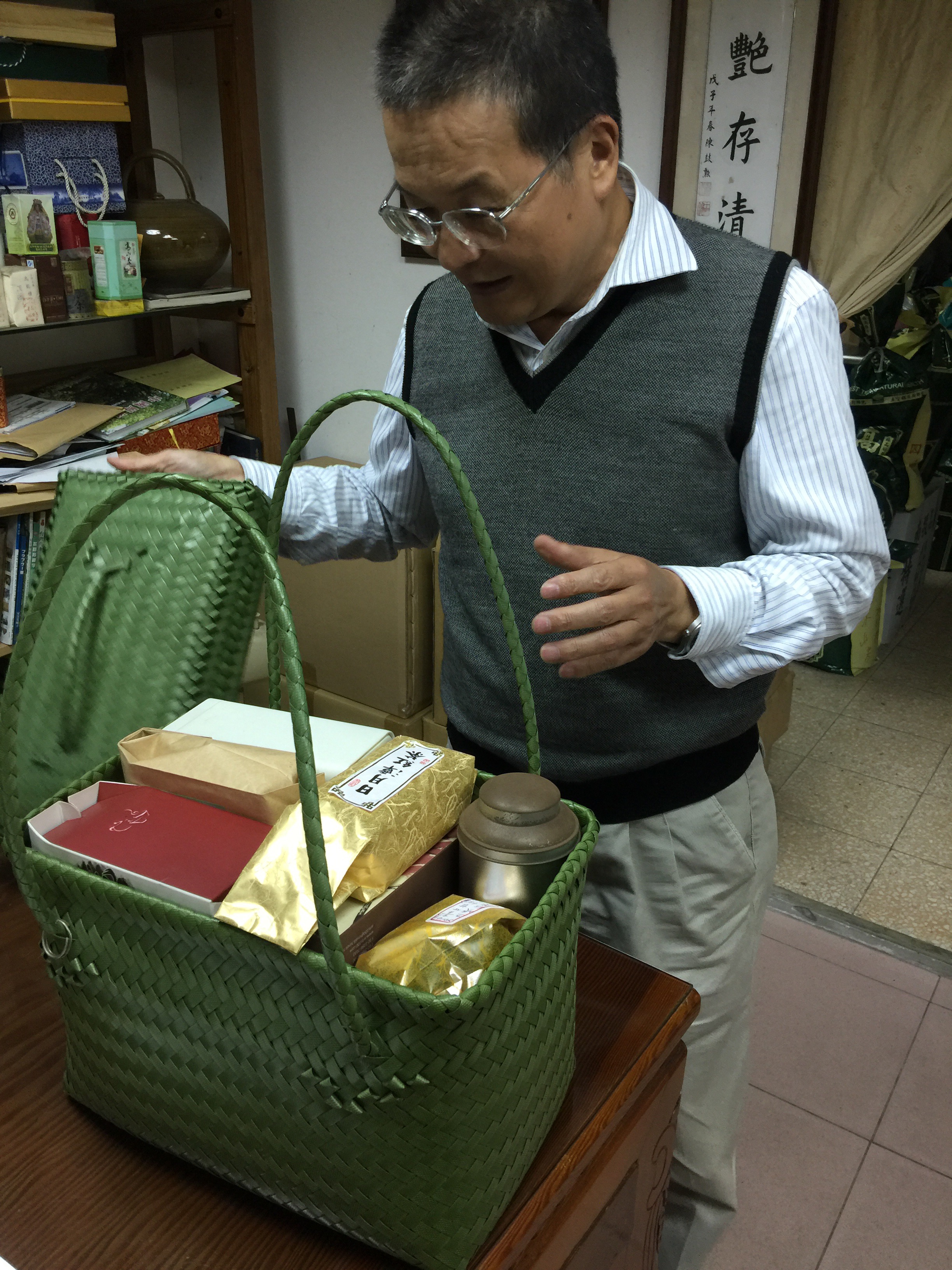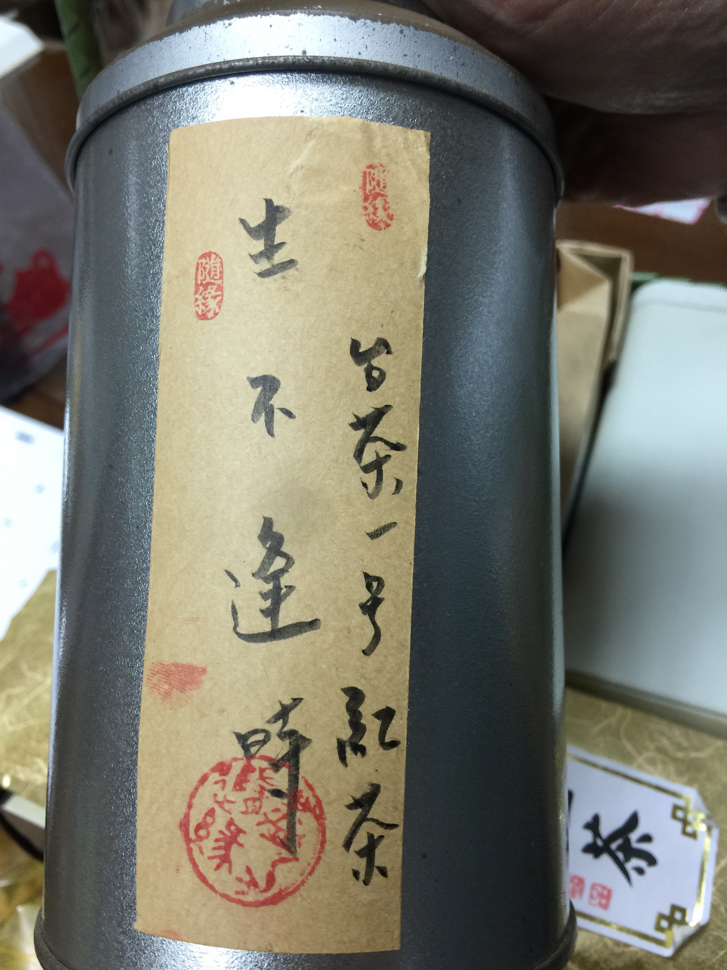 „Zeige ihm diesen Tee.“ er lächelte. Im Bild sieht man einen mit Kalligraphie geschriebene Teedose. Man würde denken, wow, was für einen eleganten Tee! Der Tee ist in der Wirklichkeit mit Sirup veredelt.