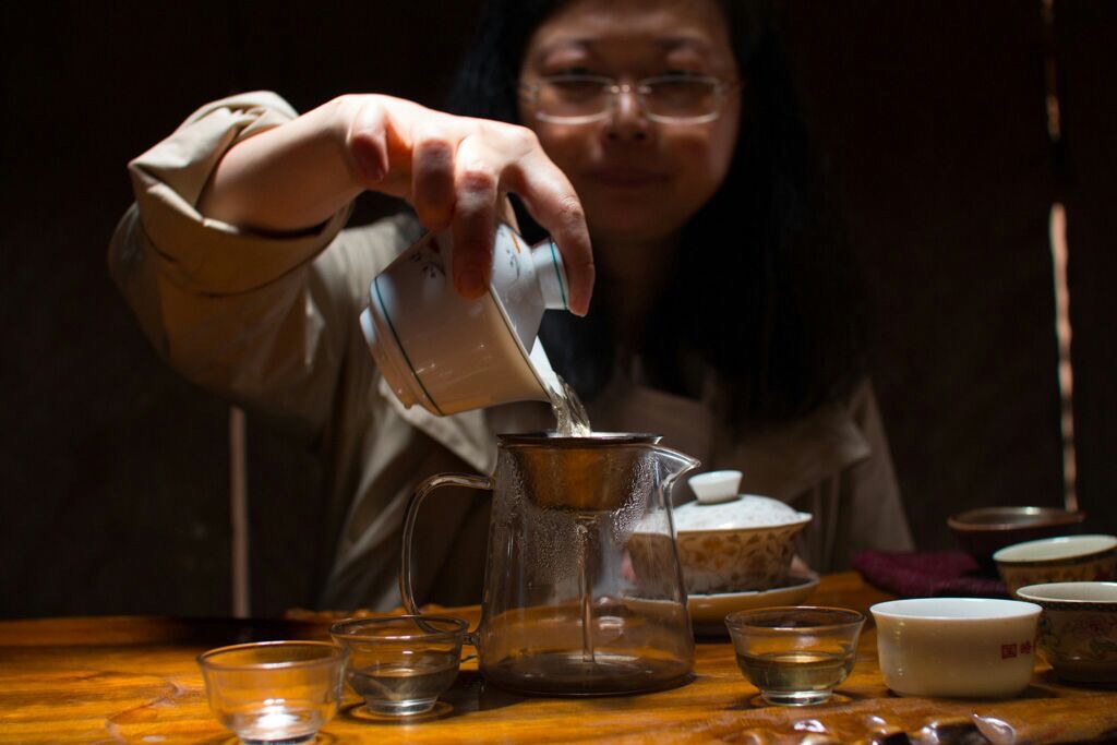 Der Tee war würzig. So würzig wie das Dorf. Der Unterschied zwischen den abgeköpften Gushu und den natürlich wachsenden Gushu ist markant! Der würzige Geschmack wirkte gesprächig auf meine Zunge, während meine Finger von den heißen Gaiwan verbrannten.