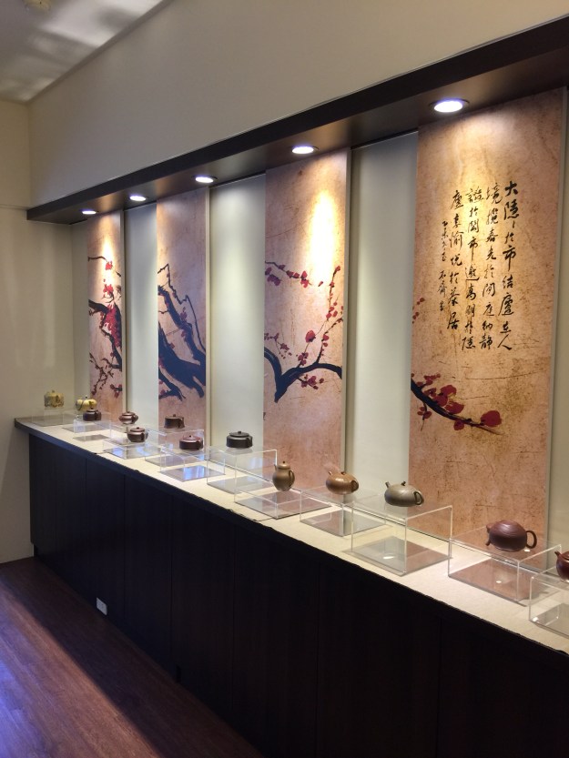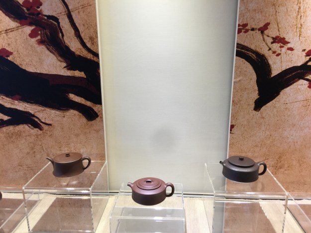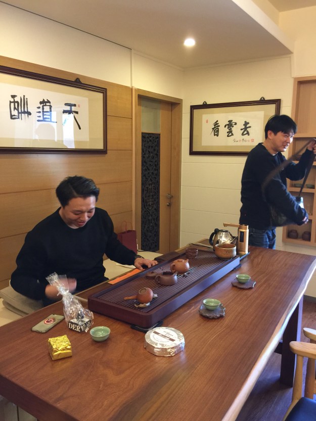 Endlich waren wir bei den Teekannen! In einem hübschen privaten Wohnung standen viele schöne Teekannen aus Yixing. Der Gastgeber ist ein humorvoller Mensch, der fast zu bescheiden redet und eigentlich oft der Gegenteil ist, aber es wirkt nicht unangenehm, sondern es ist wohl sein Selbsterkenntnis. Er weiss so viel, dass er nur ein Teil weiss. Er hat so viel, dass er von seiner Beschränktheit weiss. Er sagte, sein Vater hat ihn vor 10 Jahren allein in Yixing gelassen. Er würde gezwungen sein Netz in Yixing aufzubauen. Er wusste dass der Ton die Teekanne ausmacht. So gab er Geld aus in Ton zu investieren und den Jungen interessante Künstler zu geben, damit sie ihren eigenen Teekanne Weg gehen können. Er wusste dass der Charakter und Aufrichtigkeit eines Künstlers wichtiger ist als der Ruhm und Profit. So will er zuerst den Künstler kennen lernen und erst eine Beziehung ausbauen. Er wusste dass er nicht dem Kommerz mitschwingen will. So handelt er nur Unikat und geprüfte Ton Wäre.