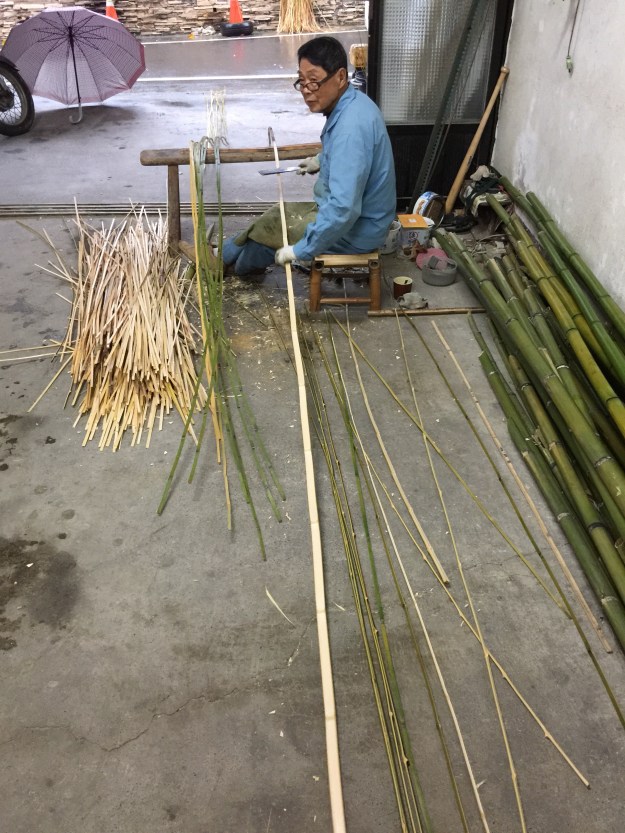 Ein 80jähriger Meister der frischen Bambus spaltet um Reisnudeln-Trocknungsgestell per Hand herzustellen. (Ich habe seinen Sohn sofort Aufträge für Gongfu Cha Korb veranlasst!)