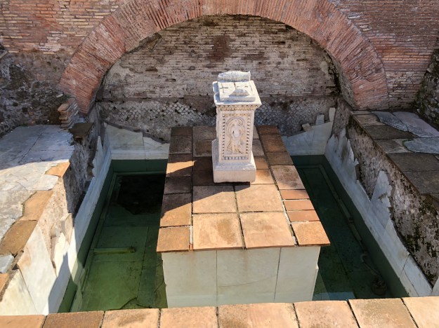 Zwischen den Steinen und Säule auf der Gelände von Forum Romanum ist dieser Ort mir aufgefallen. Ich sagte, „oh, ein Bad? Ein Brunner?“ Marie sagte ein Altar.