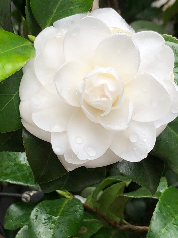 Und die zarte weiße Chamelia blüht trotz dem Regen und hält mit ihrem Lächeln dem Unwetter entgegen!