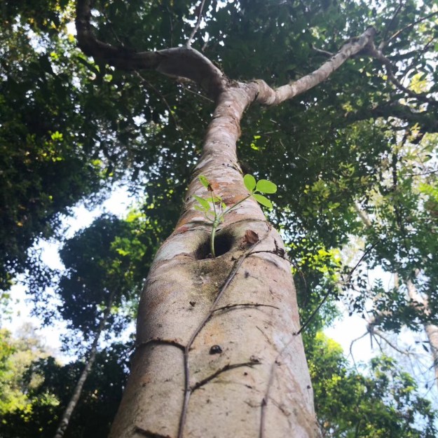 Der Maulbeerbaum am Strassenrand bekommt bereits jungen Blätter. Manche Seidenraupen sind bereits ausgebrütet und geschlüpft. Die Abendsonne strahlt auf den Wald und zwischen den Bäumen pausiert ein Raben.