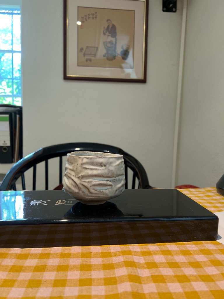 Der Tee aus der Porzellan Tasse schmeckt „hart“ und so wie ein Bai Mudan, während der Tee aus mit Aschen glasierten Schale fein intensiv und vollmundig! „Mehr“ als ein BaiMudan!