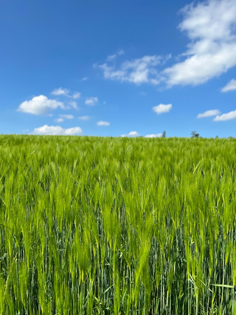 Beim Spaziergang sah ich wachsenden Weizenfeld. Das Grüntee Grün inspiriert mich sehr!