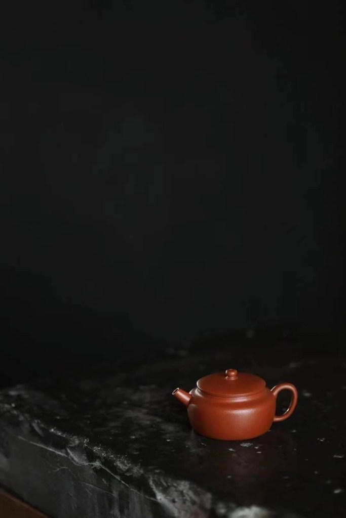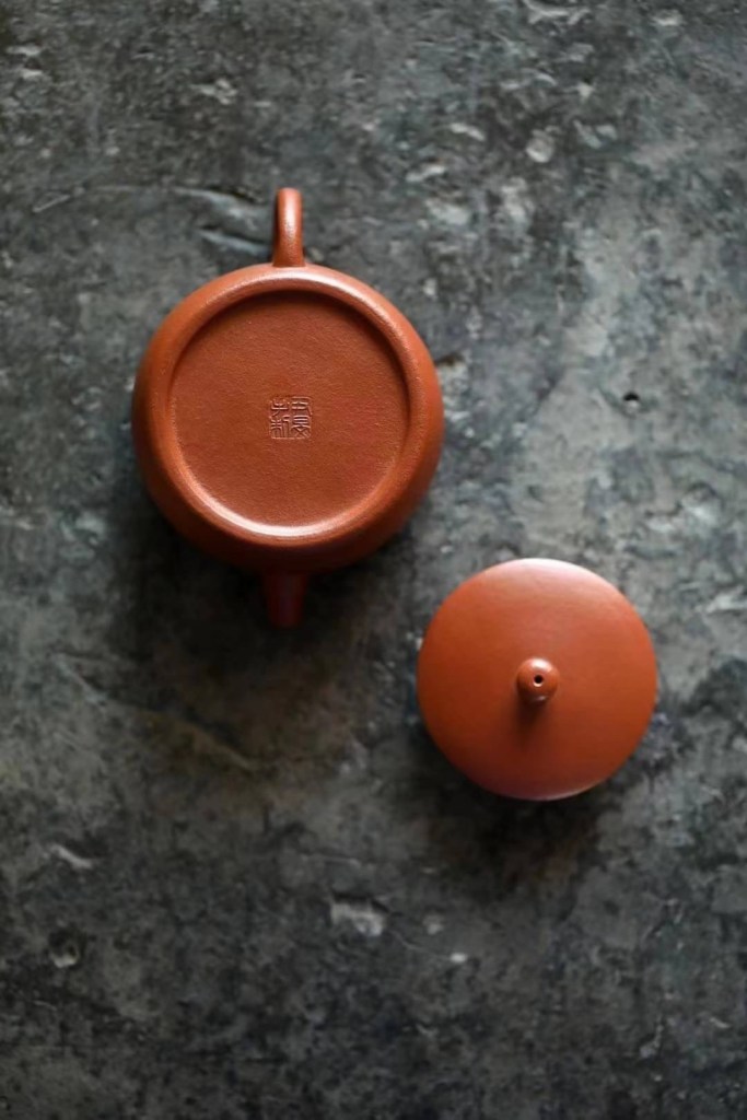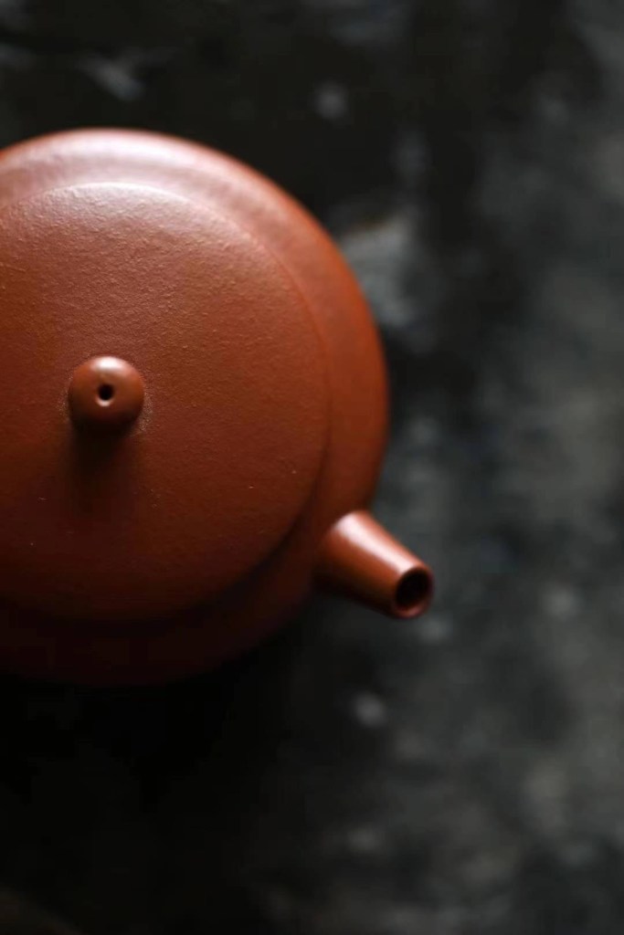 Sangbian Hu, eine traditionellen Kannen-Form aus der Ming Dynastie. Bekannt für seine eher maskulinen Linien, die eine Harmonie von Kraft und Spannung ausdruckt. Yin Min gestaltet ihre Sangbian Hu allerdings mit einer Prise Humor und femininen Geschmeidigkeit, so dass ihre Kanne trotz der kraftvollen Linien ein Hauch von Anmut und Dynamik ausstrahlt. Durch die gerade Schnabel und ein breiter Körper von vorderen Teil wirkt sie spontan, vorwärts orientierend und geradelinig. Ein Nicht-Mitläufer und zugleich ein Optimist.