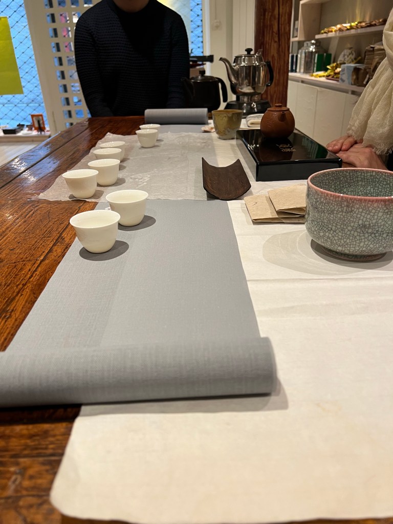 Mit Anna degustierten wir die Oolongs aus Alishan. Der neue Organic Alishan 2022 ist eingetroffen und ein ganz frischer Alishan Dongpian vom Januar 2023 habe ich gerade geöffenet.