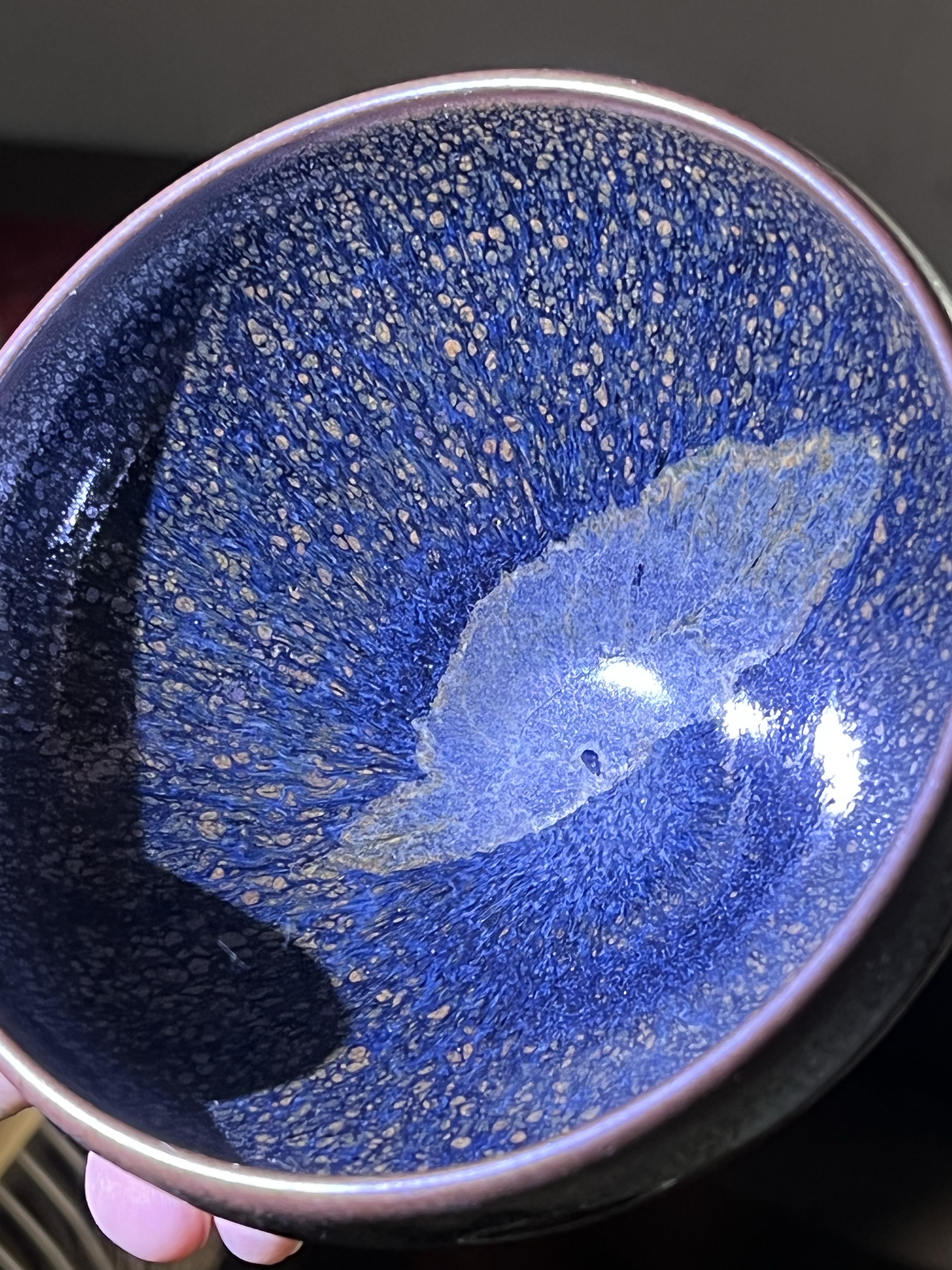 Als ich zum ersten Mal, die Muyei Tianmu von Lo, Senhao in die Hand nahm, fühlte ich mich gespiegelt. Das Blatt schwebt im Galaxie wie ein Raumschiff im All. Ich nahm die Tiefe und Vielschichtigkeit der Galaxie seiner Tianmu-Schale wahr und fühlte mich gleichzeitig wie ein Staubkorn, das im All herum fliegt, und gleichzeitig wie ein Raumschiff, der Richtung Unendlichkeit fliegt.