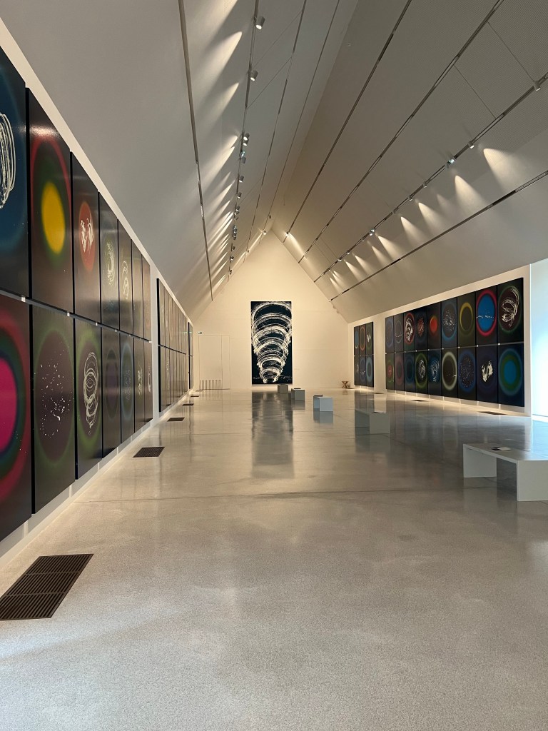 Vendier ist eine besondere Kalligraphin. Koreaner und Japaner adaptieren die chinesische Kalligraphie seit Tausenden Jahren, aber die Werke sind immer noch sehr eng an das chinesische Vorbild geknüpft. Aber von den Werke Vendiers spüre ich eine Erweiterung und Gegenfrage an das traditionelle Vorbild, „Meister, wie findest Du es? Warum nicht so?“ Als ich den Raum „Weisse Energie“ eintrat, wurde ich von der prächtigen Energie des Wassers, der Pinselns oder den Strichen überwältigt. Tradition und Modern, Ost und West, Hier und Jetzt… alles in eins.