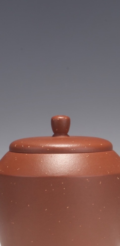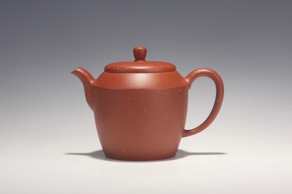 Aus von Sun Chaos Meister Wu Dongyuan gelagertem Zhuni Ton. Mit speziellem Verfahren hergestellten gebackenen Körnchen hat Sun Chao eine besondere Kanne entworfen und fertiggestellt. Die spezielle Zylinder Form ist besonders gut geeignet für duftenden Tee. Die Linie vermitteln uns zwar eine klare Form, die Disziplin suggeriert, aber durch die feinen samtigen Oberflächen und Sternchen bekommt die Kanne Eleganz und Anmut.