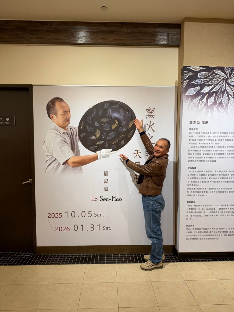 Lo Senhao stand vor der Plakat seiner Ausstellung