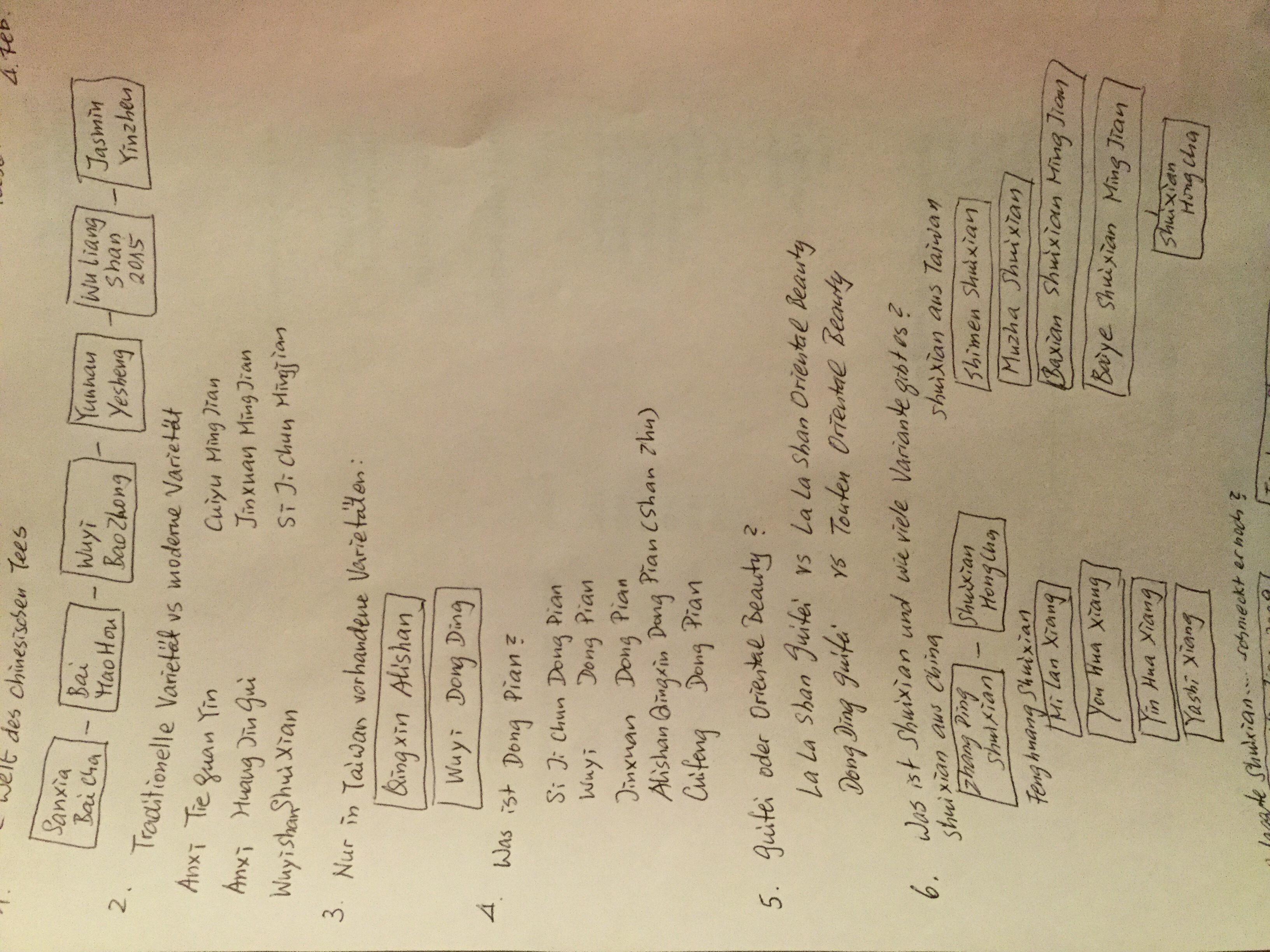 Heute degustierten wir vier Rougui: Matouyan A, Matouyan B, Niulankeng, Yünüfeng ( Berg von schönen Frauen).