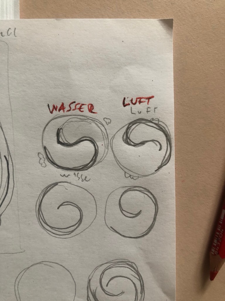 Kim hat Shui Tang zu eine Ozean gemalt, wo Delphine und Seepferdchen zu Besuch kommen. Shui Tang, der Ort des schönen Wassers, ist oft wie ein Teich. Und ich steht bei der Kasse wie ein Frosch. Die Prinzessinnen kommen und verlangen nach dem verlorenen Goldball. Das Goldball ist wie der Tee, der sie wieder glücklich und lebendig macht. Ich spring ins Wasser oder gehe in den Keller und hole etwas. Den Goldball.