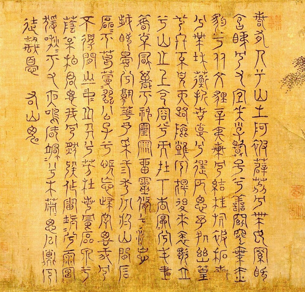 Der berühmte Kalligraph hat den originalen Gedicht Text mit einem alten Stil von Qin Dynastie zu dieser Malerei geschrieben: