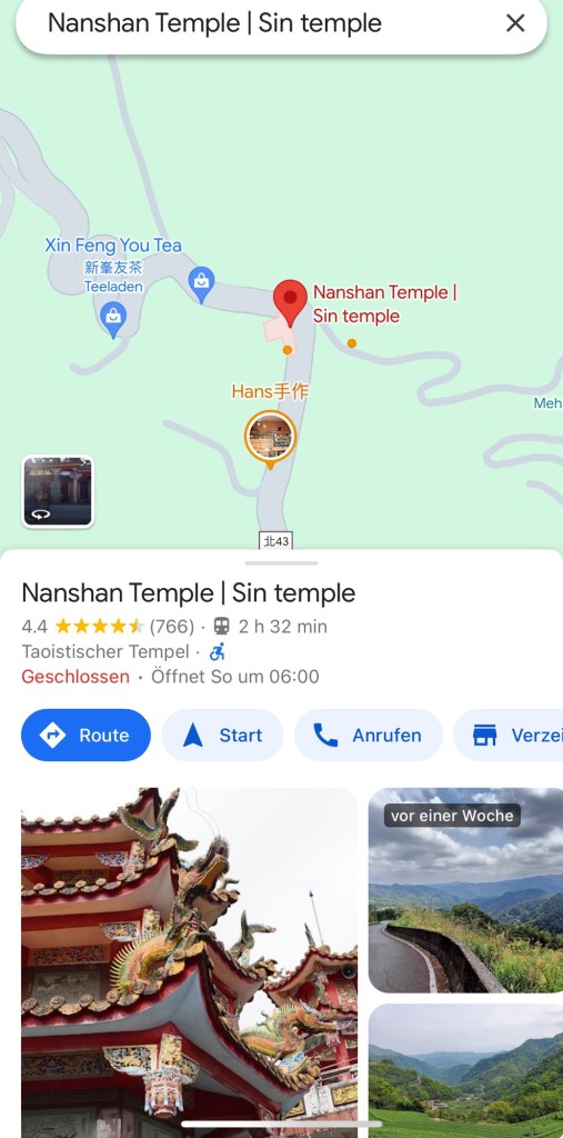 Aber ein Spaziergang durch die schönen Landschaft und neben dem Teegarten ist wunderbar. Nehmen Sie einen Bus Richtung zu Nanshan Tempel. Dort können Sie eine andere Seite von Taipei erleben!