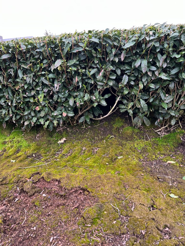 Nicht pflückbarer TeegartenVon Moos verwachsenen Äste bedeutet zu feuchtes Mikroklima. Es tut Teepflanzen gar nicht gut. Auch ein Zeichen von Vernachlässigung.