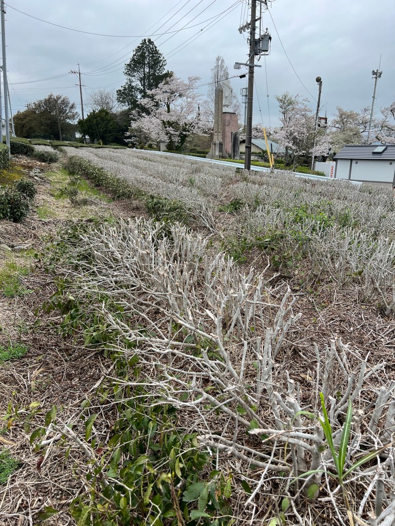 Ich sah überall vertrocknete Unkraut. Das ist das Zeichen von der Konsequenz der giftigen Stoffe. Eigentlich können die Unkraut hier als Schutz für den Boden dienen. Solange die Unkraut nicht verwachsenen Grass oder Kletterpflanzen sind, sind sie nicht immer schädlich für Tee.