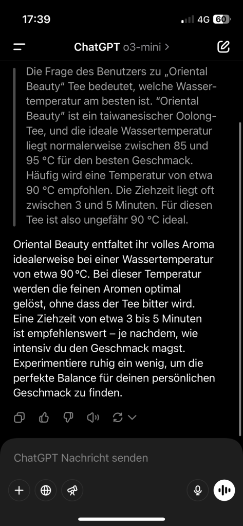 Simon erzählte mir bei einem stillen Moment, dass er sich gestresst fühlt, warum andere Teefreunde scheinbar besser Tee machen können. Ich habe ihm gesagt,