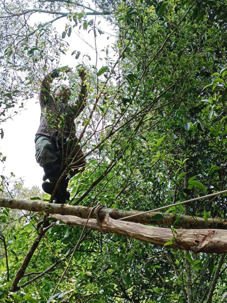 Aber das Pflücken von auserwählten Gushu Bäumen ist eine grosse Herausforderung, die Geduld und Beharrlichkeit erfordert. Weil die starken, alten Bäume nicht konzentriert im Wald wachsen, müssen die Pflücker oft Kilometer weit von Einem zum Anderen wandern. Die