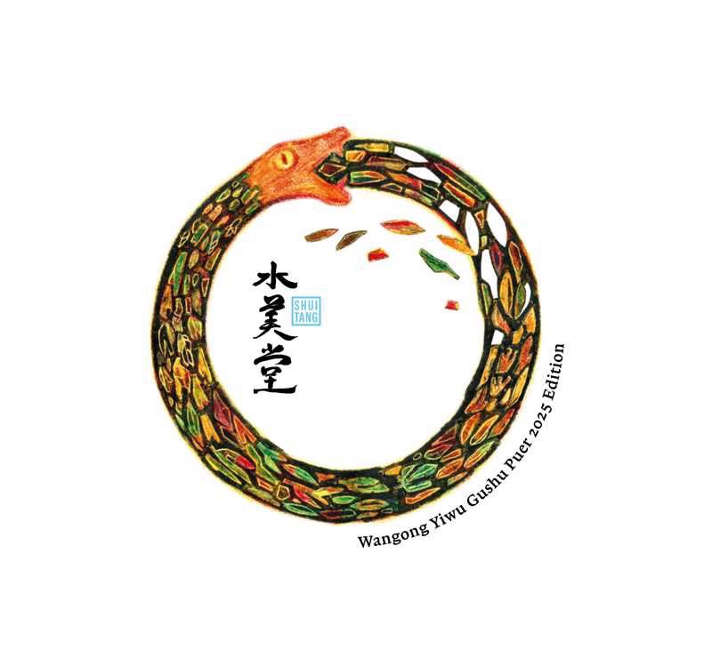 Simon Trüb wird beauftrag ein Puer Papier zu entwerfen, um das Jahr der Schlangen – 2025 zu würdigen. Die Schlangenschuppen werden wie Teeblätter dargestellt. Wachsende Triebe symbolisiert unaufhaltbare Kraft des Wachsens. Die Seele will sich entwickeln, gerade wenn die Umgebung sich verschlechtern und ändern. Es wird immer ein Ausweg gefunden werden – das Problem ist der Weg. Vielleicht ist es unsere Aufgabe, kein Zero Summe Spiel im Leben zu sehen. Dort, wo wir Unsicherheit und Hoffnung sehen, ist der Raum des Wachsens. Den Widerspruch auszuhalten ist die Kraft die Haut zu erneuern und abzustreifen. Dazu brauchen wir Ruhe, Geschmeidigkeit und Weisheit. Tee trinken bietet uns vielleicht einen Raum sich zurückzuziehen in diesem sehr lauten emotionalen Jahr, indem Kriege, Auseinandersetzungen und Ängste unser Sinnentrüben. Puer Wangong Gushu und Zhengjia Liangzi (Mahei) Gushu von Produzenten Yu, Chinsong können ein Refugium anbieten, für die nächste Enthäutung unseren neuen Entwicklung zu dienen.