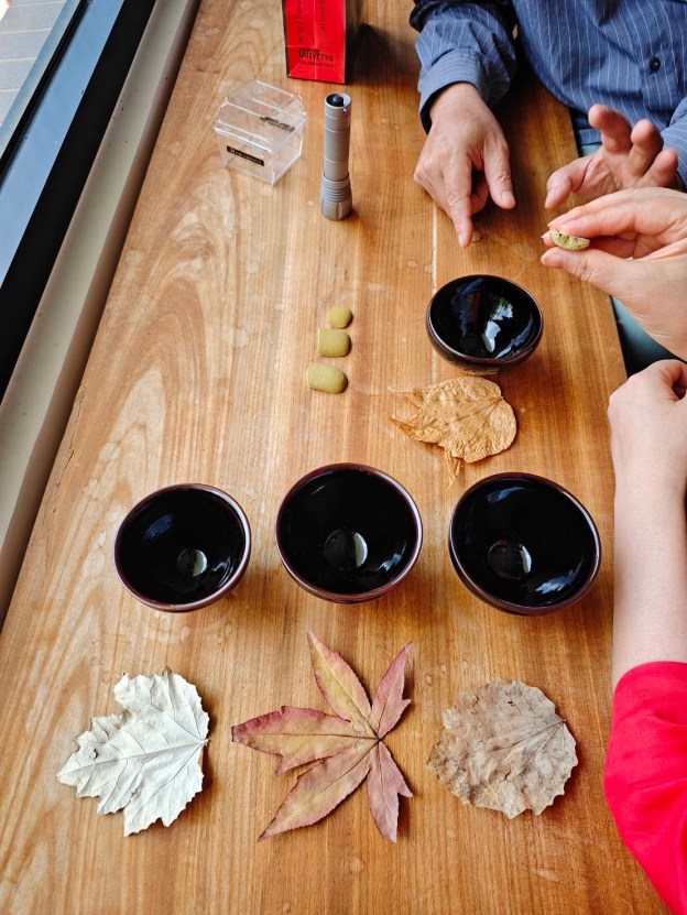 Am nächsten Tag im Workshop mussten wir „schwitzen“ wegen den verstopften Sprüher und die Ingenieur haben sich getroffen zu reparieren und zu studieren. Es war eine gemeinsame Aufgabe. Ich war erstaunlich entspannt. Es gab viele wertvolle Fotos und Szene. Später musste man rasch einkaufen gehen. Aber Lilly hat aus Not vieles gezaubert und Lösung gefunden. Am Ende war alles wunderbar gelaufen. Diese Schlamm Glasur beschert uns Tausende Freude und bester Genuss für den Tee! ( gestern fragte mich eine Besucherin warum findet man in Shui Tang keine Infos über das Workshop- weil es rasch mehr als ausgebucht war. Miriam veröffentlicht bald ein Podcast darüber und man kann mehr darüber erfahren.)