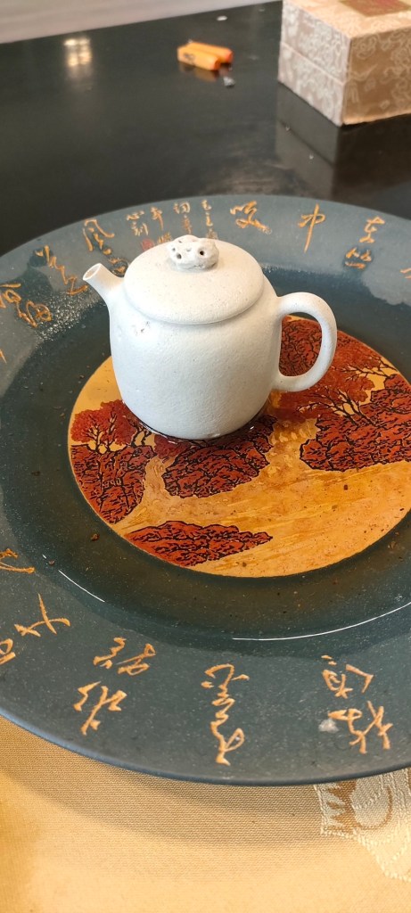 Als ich mit Teefreunden den Wangong Gushu Puer von Yu in meiner speziellen Yixing Kannen von Sun Chao trank, wurde ich von der zarten Textur und vom balsamierenden Abgang beeindruckt. Ach, woher kommst Du? Was für eine Grazie! Anmutig und Elegant – eine Schönheit, tanzend, besuchte uns in Zürich aus den weiten Bergen Yunnans. War es die Kanne, die diese Grazie zum tanzen einlud? Oder einfach der gute Wangong, der die Schönheit in die Spiegelgasse rief.