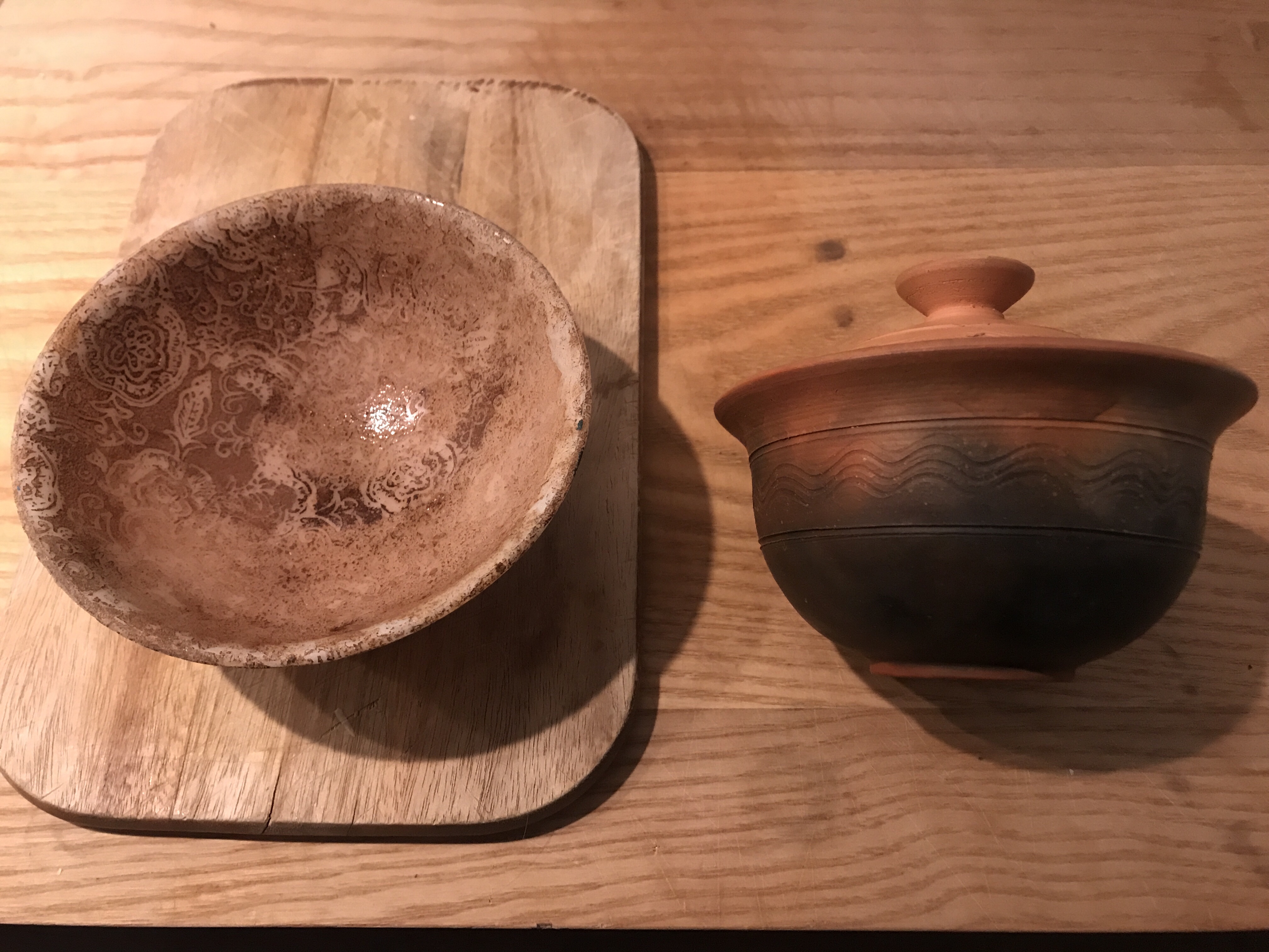 Er zeigte mir wie stark das Blatt schrumpft im Ofen! Beim Eichenblatt zum Beispiel weist er auf den starke Schrumpfungsprozess hin und sagte dass man ein Eiche Blatt von fast 20 cm für Ofen braucht.