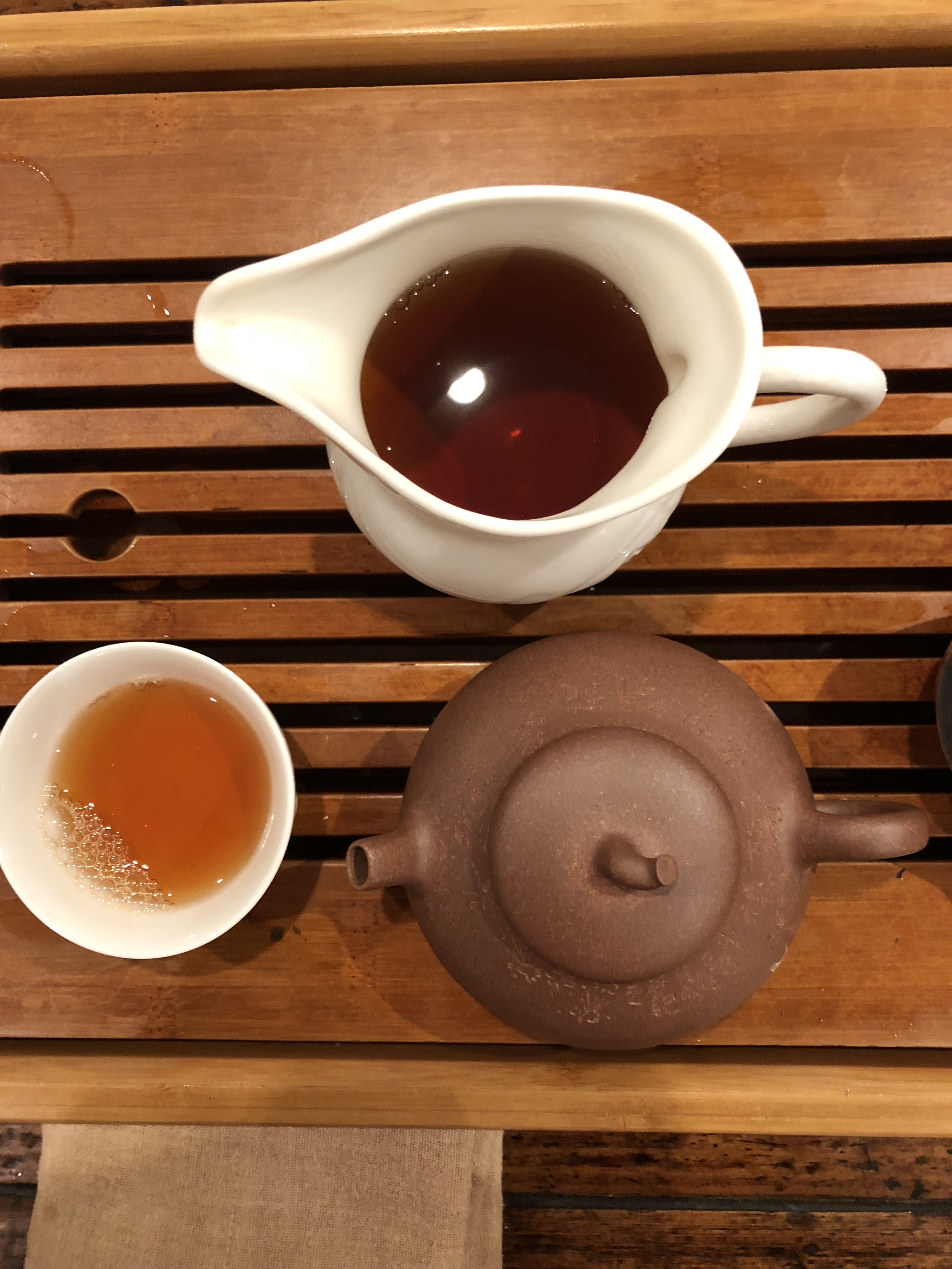 In meiner eigenen Freizeit beginne ich seit zehn Jahren zum ersten Mal wieder Tee für mich selbst zu zelebrieren – mit Gongfu Cha Stil. Der Anfang wurde gemacht mit einem Tablette, das mir ein Rahmen schenkt, und eine schöne Yixing Kanne, die mir viel Gewicht verleiht, den Tee für mich zu geben. Und einen Tee, in dem ich tiefer eintauchen möchte.