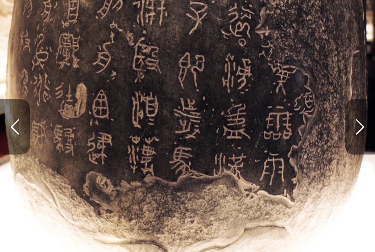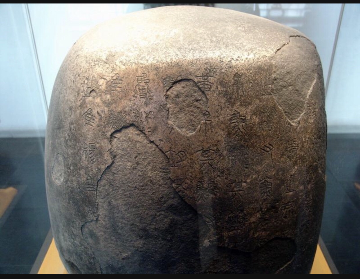 Stein-Trommel, Shigu bezeichnet man in China die Jennifer Steingruppe, die im Tang Dynastie gefunden wurde und aus der Zeit von 475-221 B.C. entstanden waren. Auf dieser Stein Gruppe ( 10 Stücke) wurden Texte eingeschnitzt. Weil der Stein rund und wie Trommel aussieht, heisst es Text von Stein-Trommel. Sie sind die älteste in Stein eingeschnitzten Schrift.