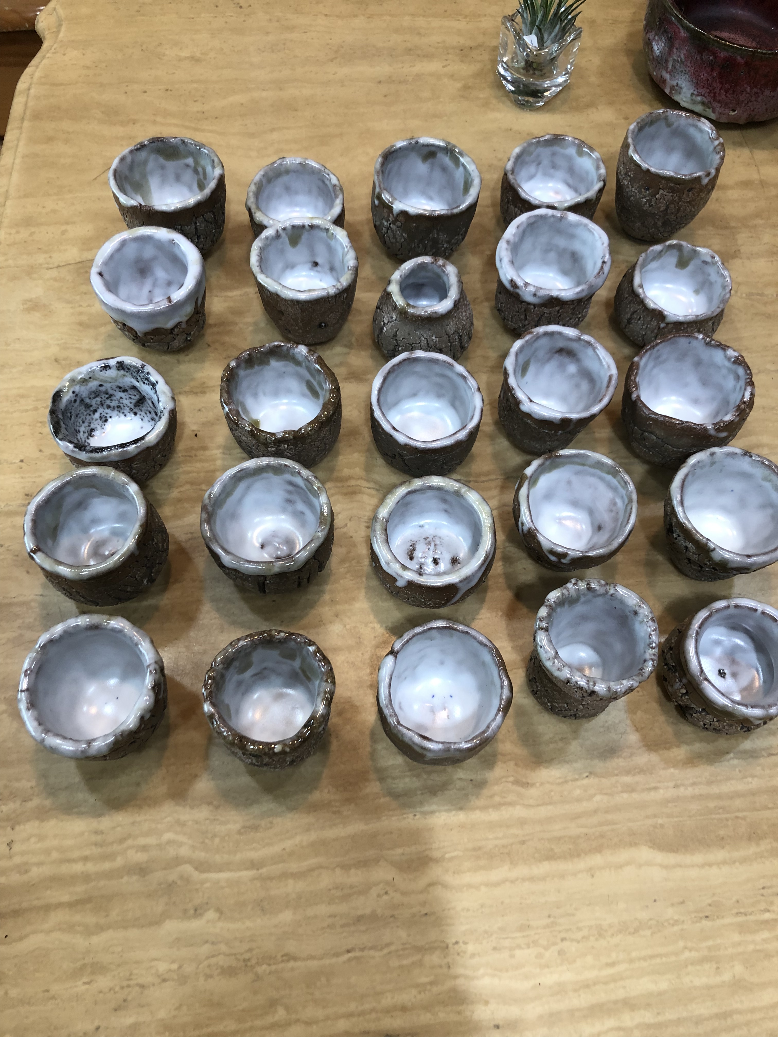 Nach ihren Besuch habe ich drei Tassen von Lijiao genommen und goss einen gerade eingetroffenen Muzha Tieguanyin auf. Der Tiegaunyin durftet seltenerweise blumig und schön fruchtig. Er tröstete und gab mir Kraft in diesem Wetterumschwung. Drei Tassen von dem gleichen Tee zeigten mir in eine Stunde das Paralelle und das Paradoxe. Sie gaben die feine Textur des Tees wider, den exakten Geschmack des Tiegaunyins. Aber die beiden mit ähnlichen Glasur aus Flussbett-Schlamm geben nach einer Stunde immer noch Lebendigkeit und belebende Süsse, obwohl sie verschiedene Aussenglasuer haben und zwei unterschiedliche Formen haben. Die andere Tasse mit Shino ähnlicher Glasur zeigt mir die leise Herbe und Abstringenz. Der Unterschied liegt meiner Meinung nach an den Innenglasur.