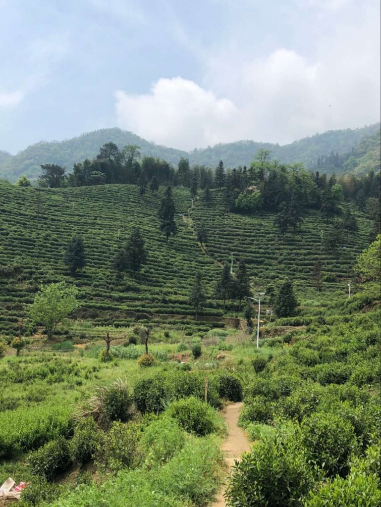Oben zeigt mir ein Teegarten von Taiping Houkui, wo Shui Tang den Tee einkauft. Wir sehen unregelmässige Teebusch. Sehr ähnlich wie oben in Lincang. Terrasse und nicht geschnittene Teebuschen. Gruppen mässig, nicht sehr gepflegt. Das Foto von Lincang sieht trockener aus, weil der Regen seit zwei Jahren unregelmässig fällt.